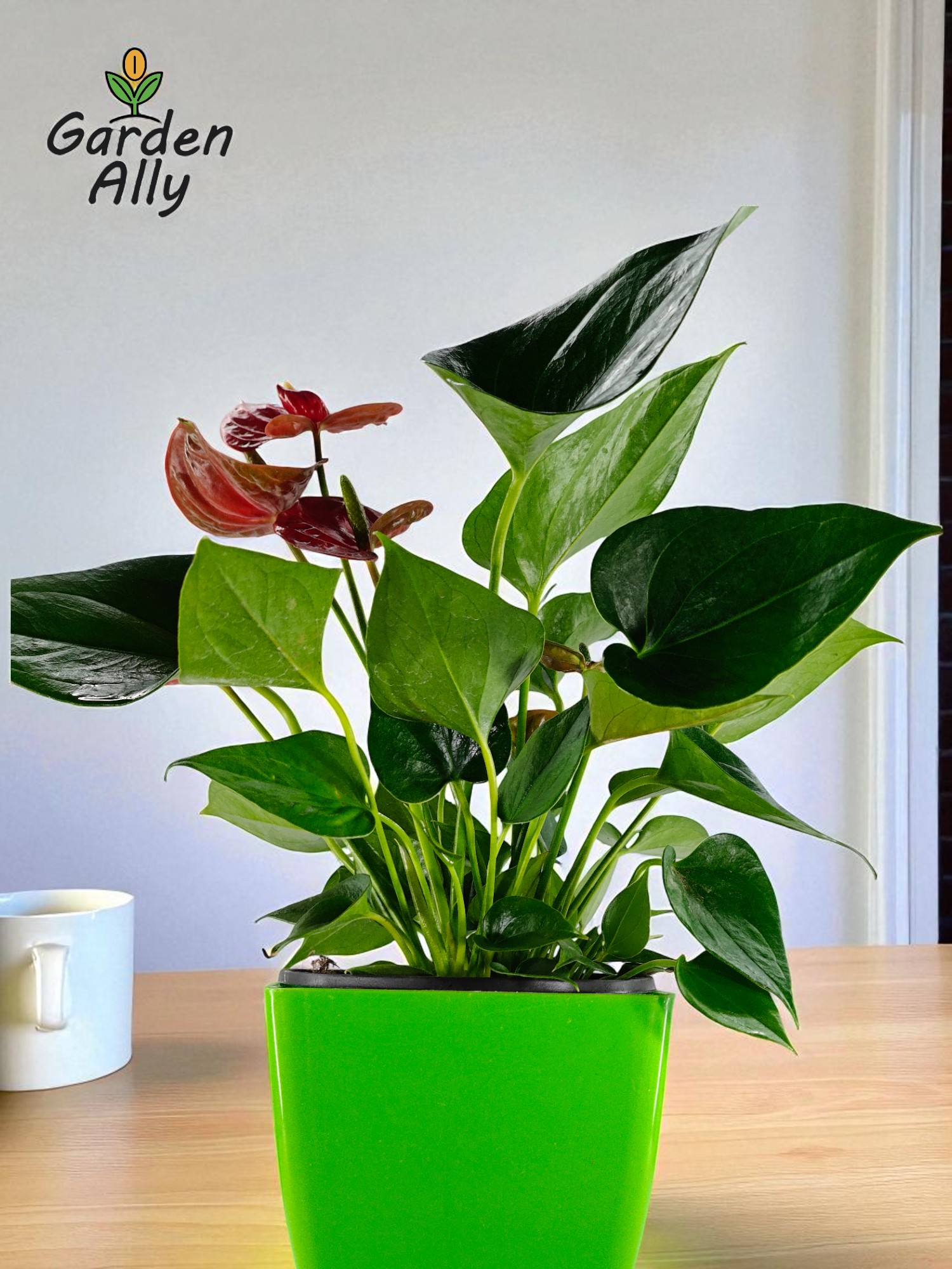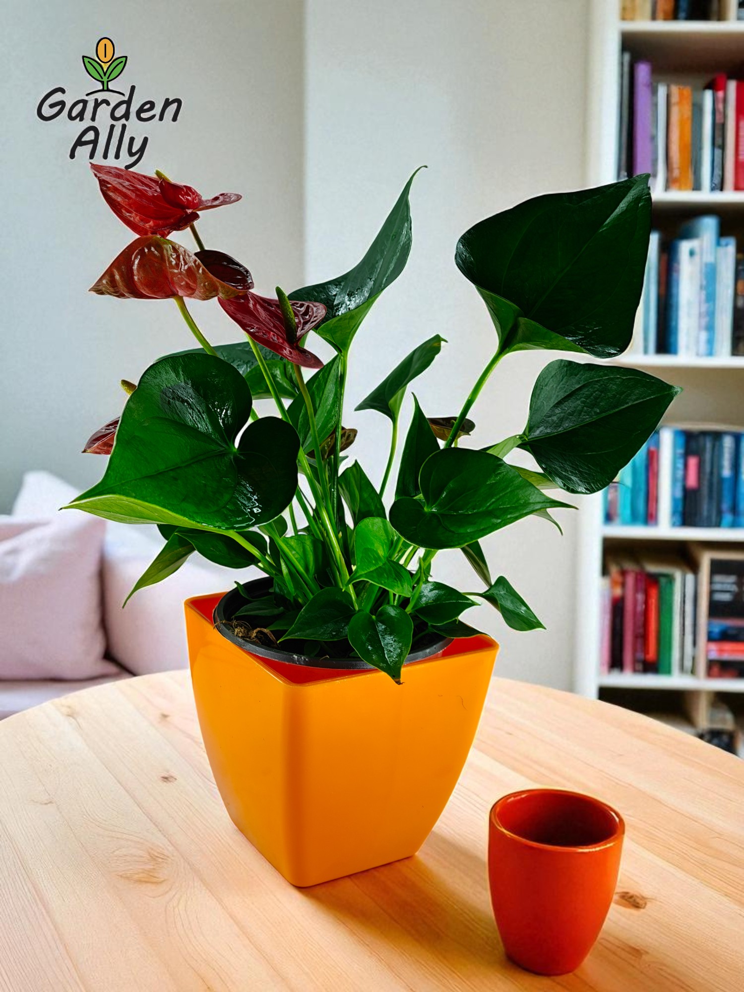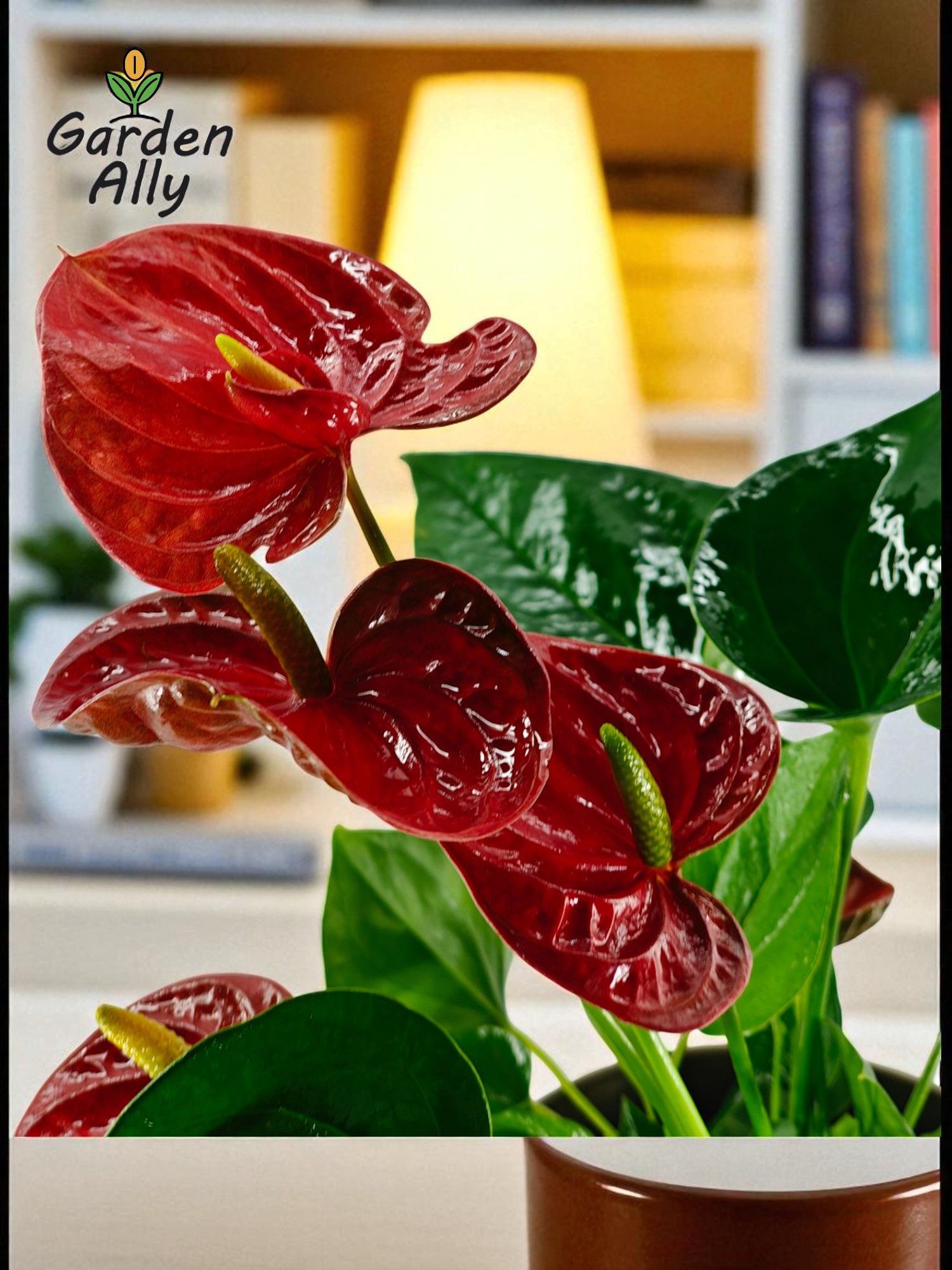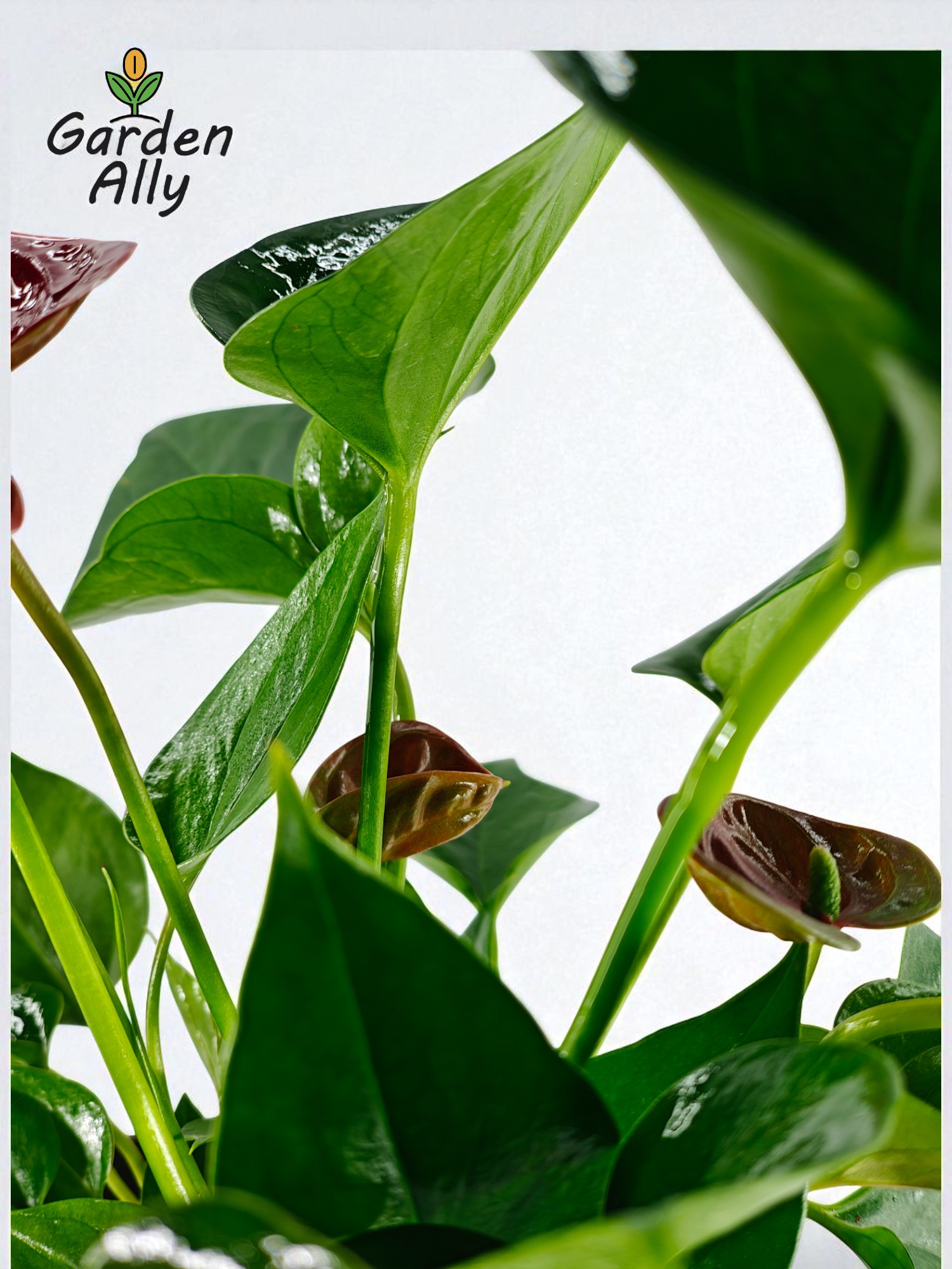 They typically have glossy, heart-shaped red spathes with a prominent central spike (spadix) which holds the true, tiny flowers.