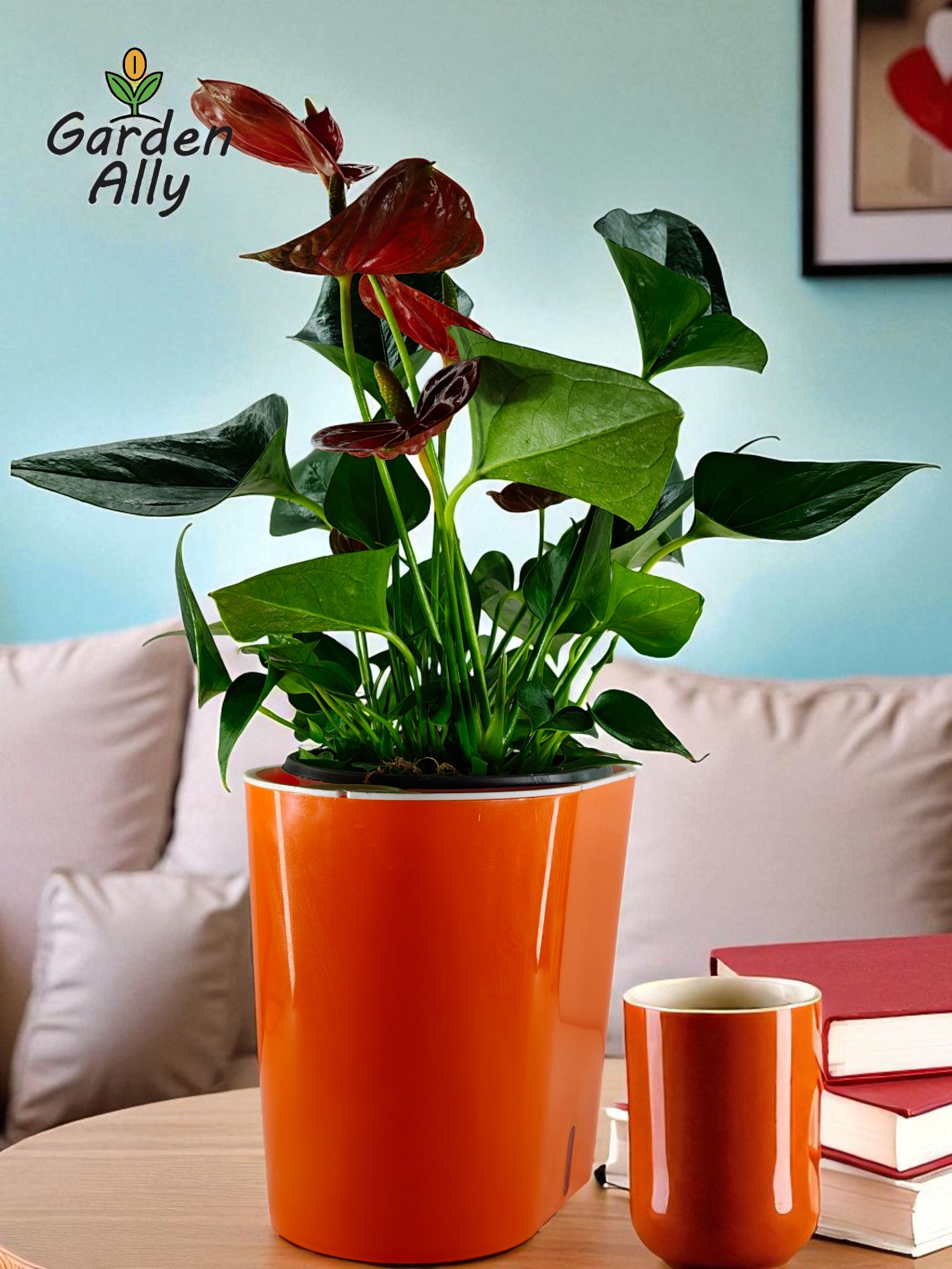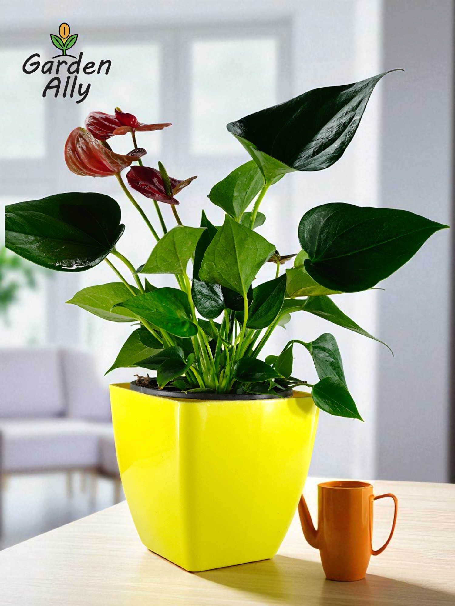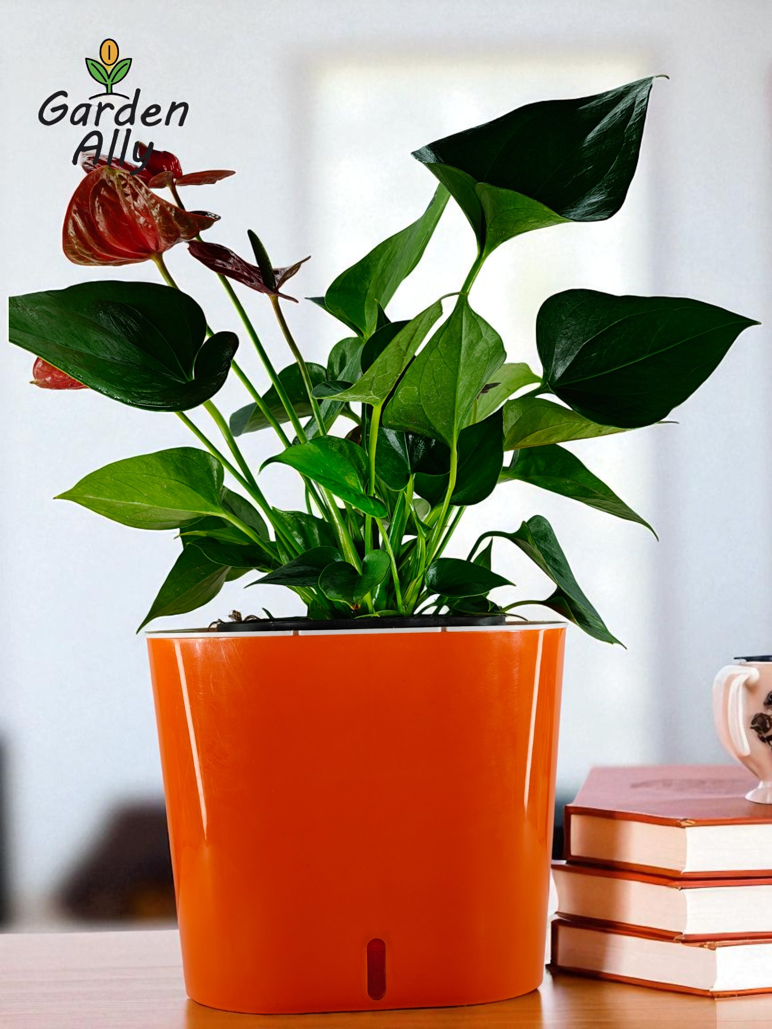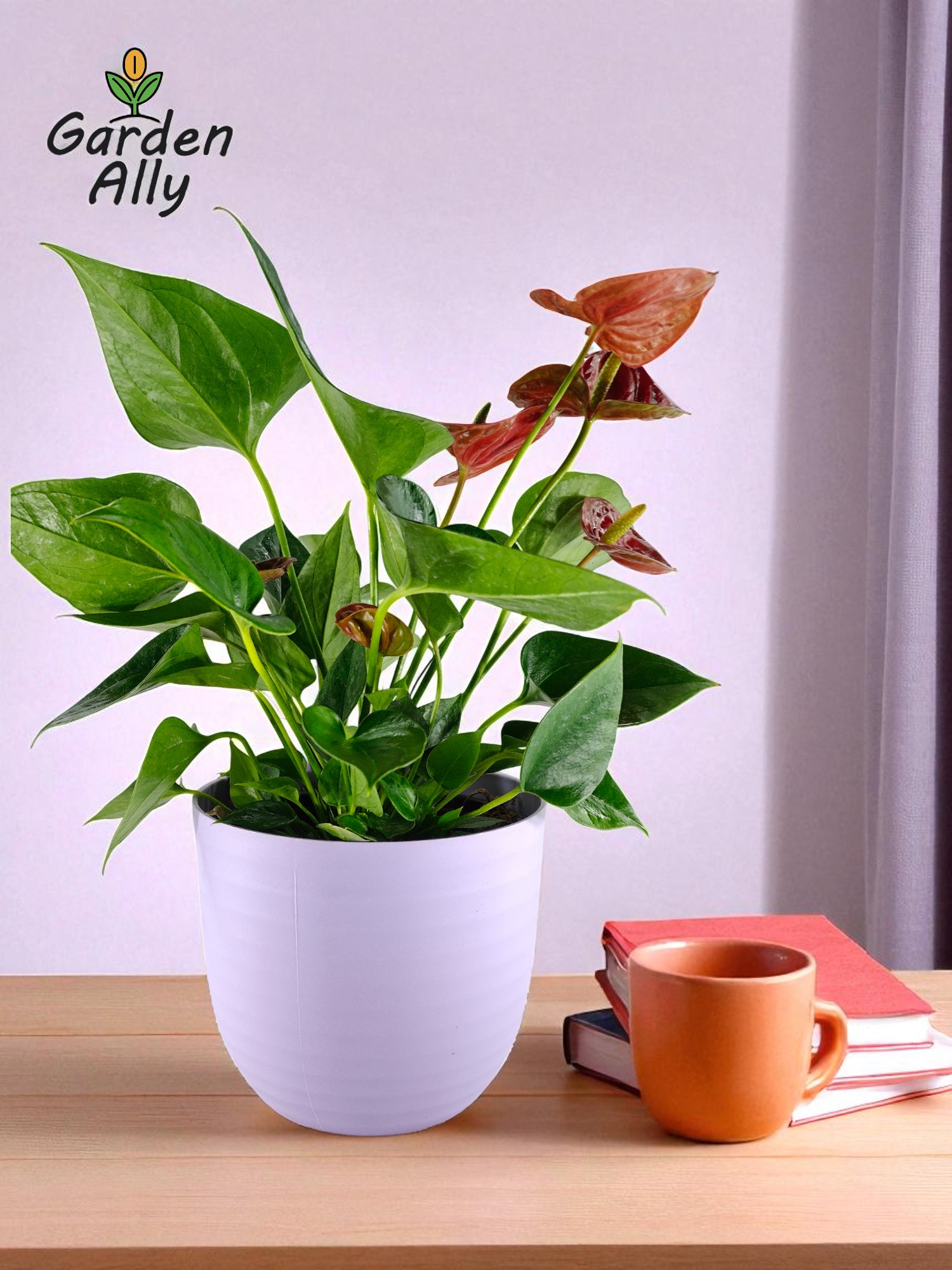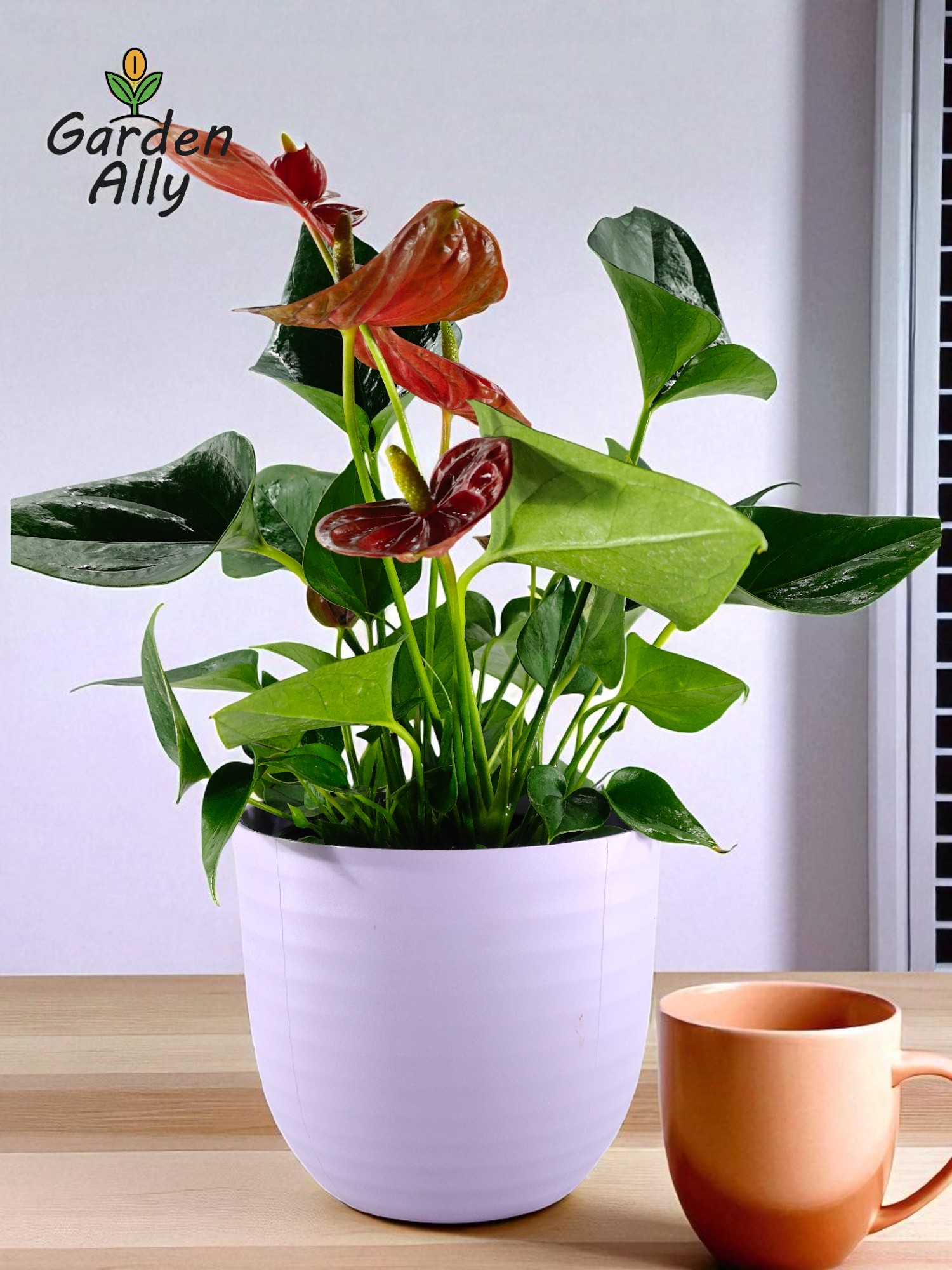 They typically have glossy, heart-shaped red spathes with a prominent central spike (spadix) which holds the true, tiny flowers.