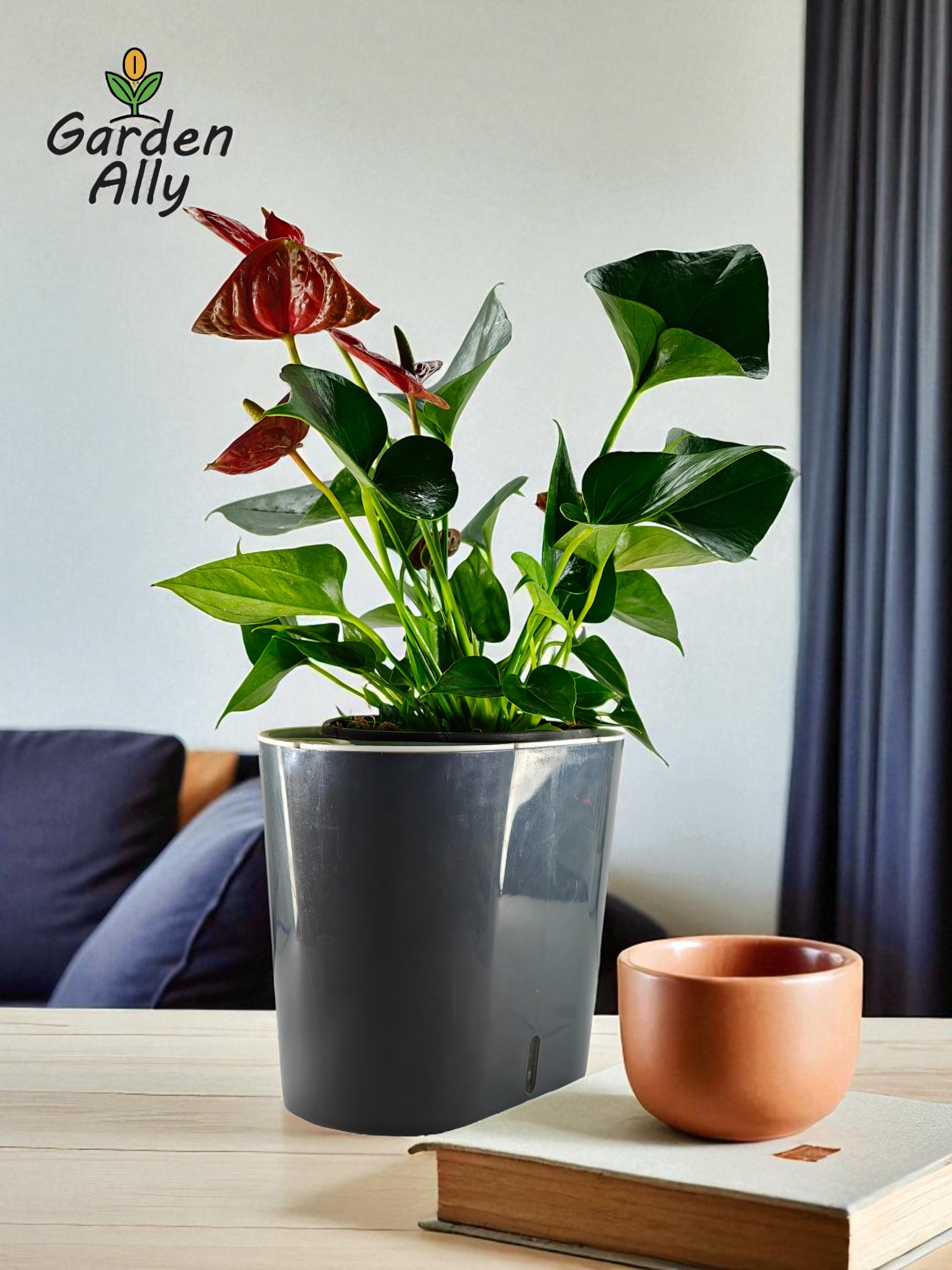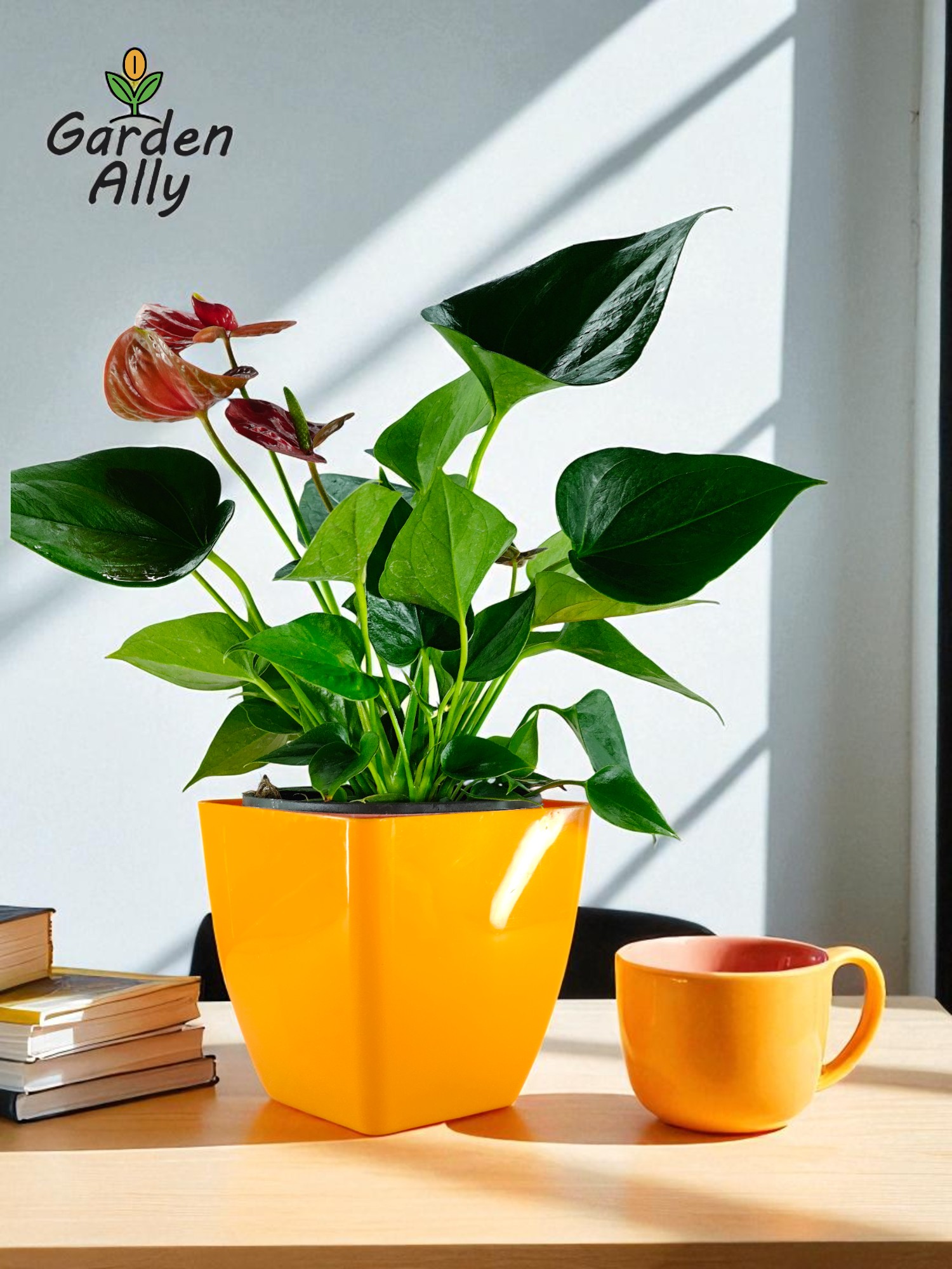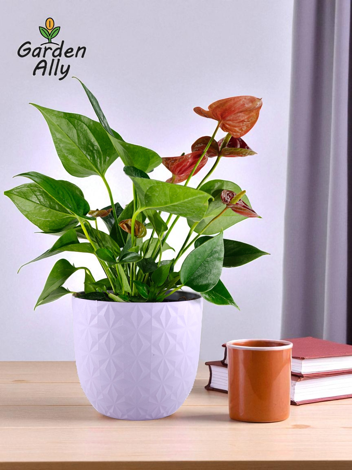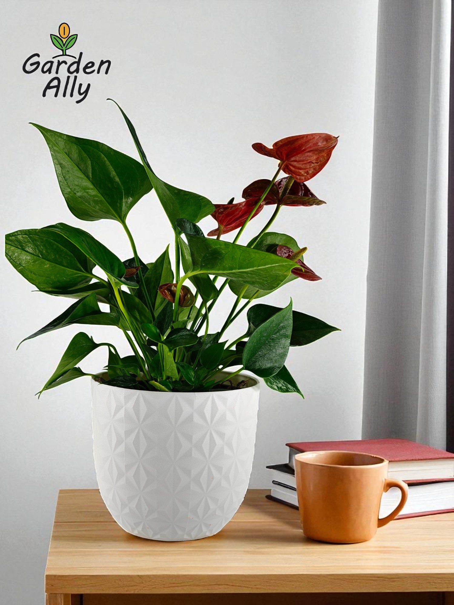 They typically have glossy, heart-shaped red spathes with a prominent central spike (spadix) which holds the true, tiny flowers.