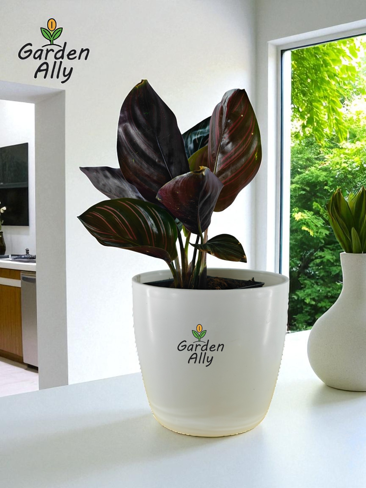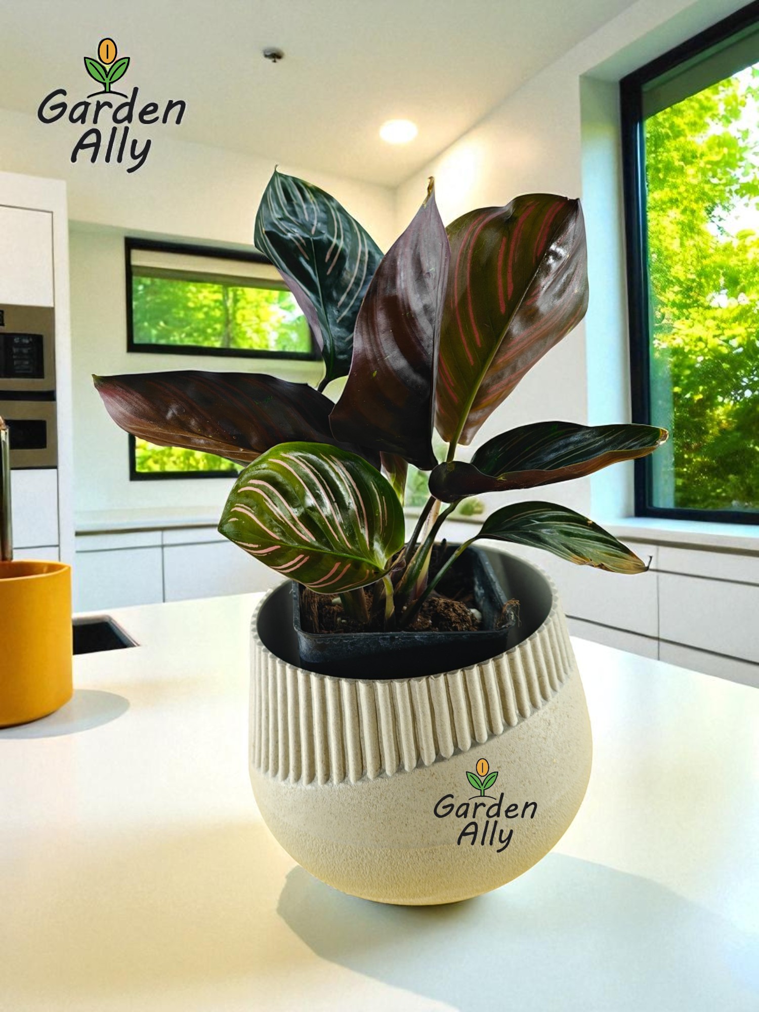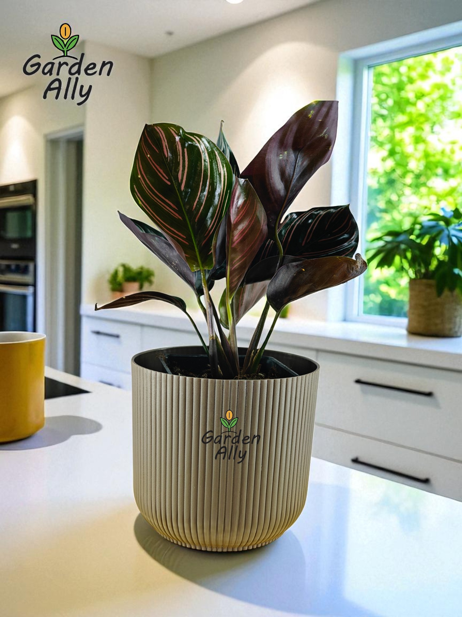 Prefers bright, indirect light: This is the most crucial factor for maintaining its vibrant pinstripes and preventing leaf burn. It thrives in a spot near an east- or north-facing window, or a few feet back from a south- or west-facing window.Avoid direct sunlight: Harsh, direct sun will scorch the leaves, causing them to fade, curl, and develop brown patches.