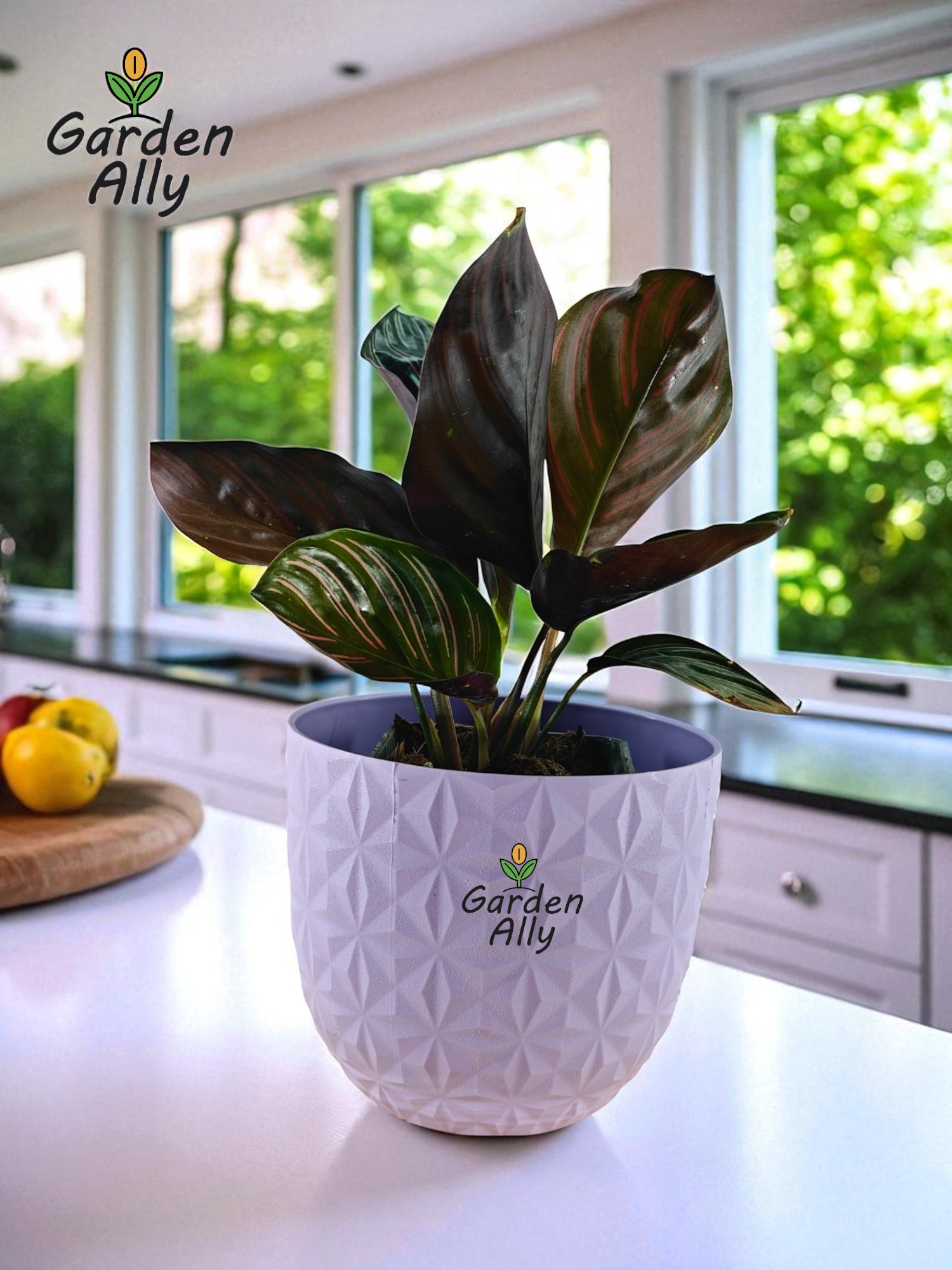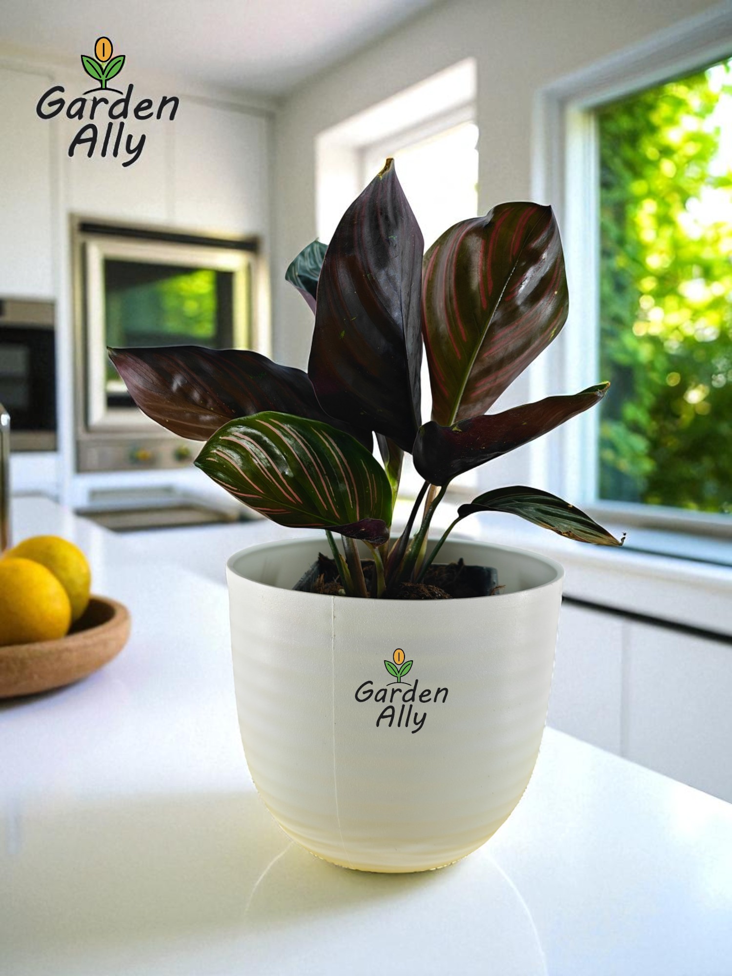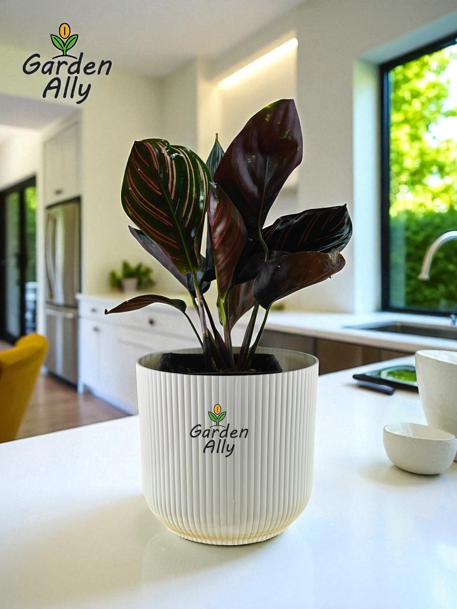 Prefers bright, indirect light: This is the most crucial factor for maintaining its vibrant pinstripes and preventing leaf burn. It thrives in a spot near an east- or north-facing window, or a few feet back from a south- or west-facing window.Avoid direct sunlight: Harsh, direct sun will scorch the leaves, causing them to fade, curl, and develop brown patches.