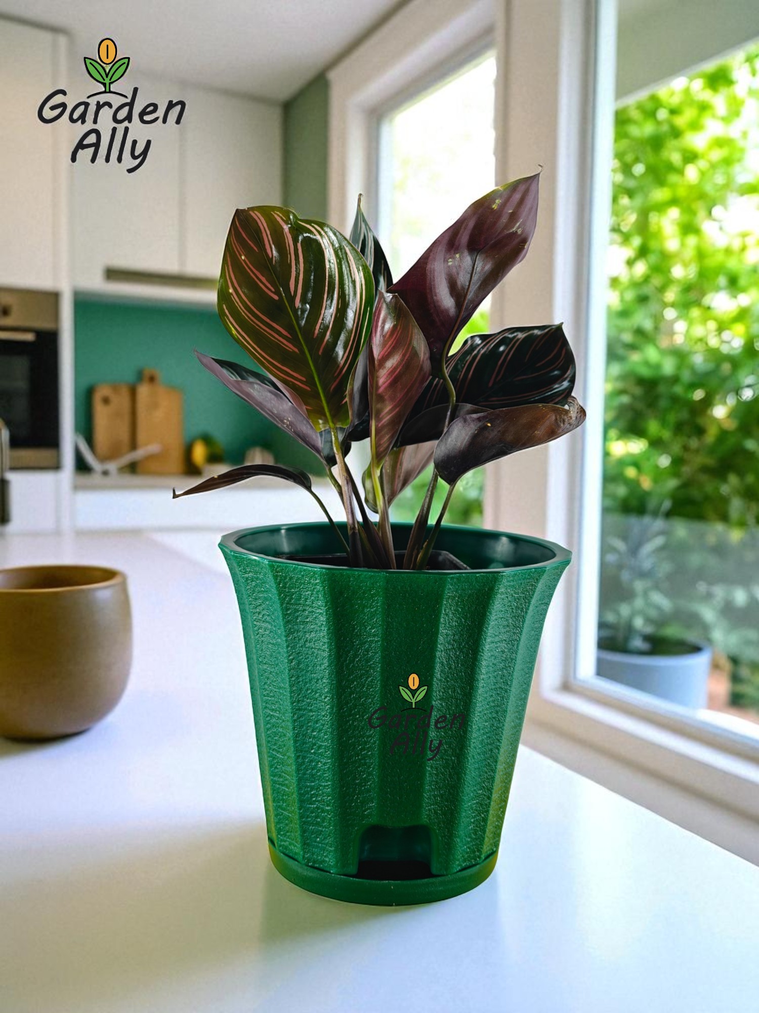 Keep the soil consistently moist, but not soggy: Calatheas hate to dry out completely, but they are also very prone to root rot if the soil stays waterlogged. The best practice is to water when the top inch of the soil feels dry to the touch.Use filtered, distilled, or rainwater: This is a key tip for Calatheas. The chemicals and minerals (like fluoride and chlorine) in tap water can cause brown tips and edges on the leaves. If you must use tap water, let it sit out for at least 24 hours to allow the chlorine to dissipate.Reduce watering in winter: The plant’s growth slows in the cooler months, so it will need less water.